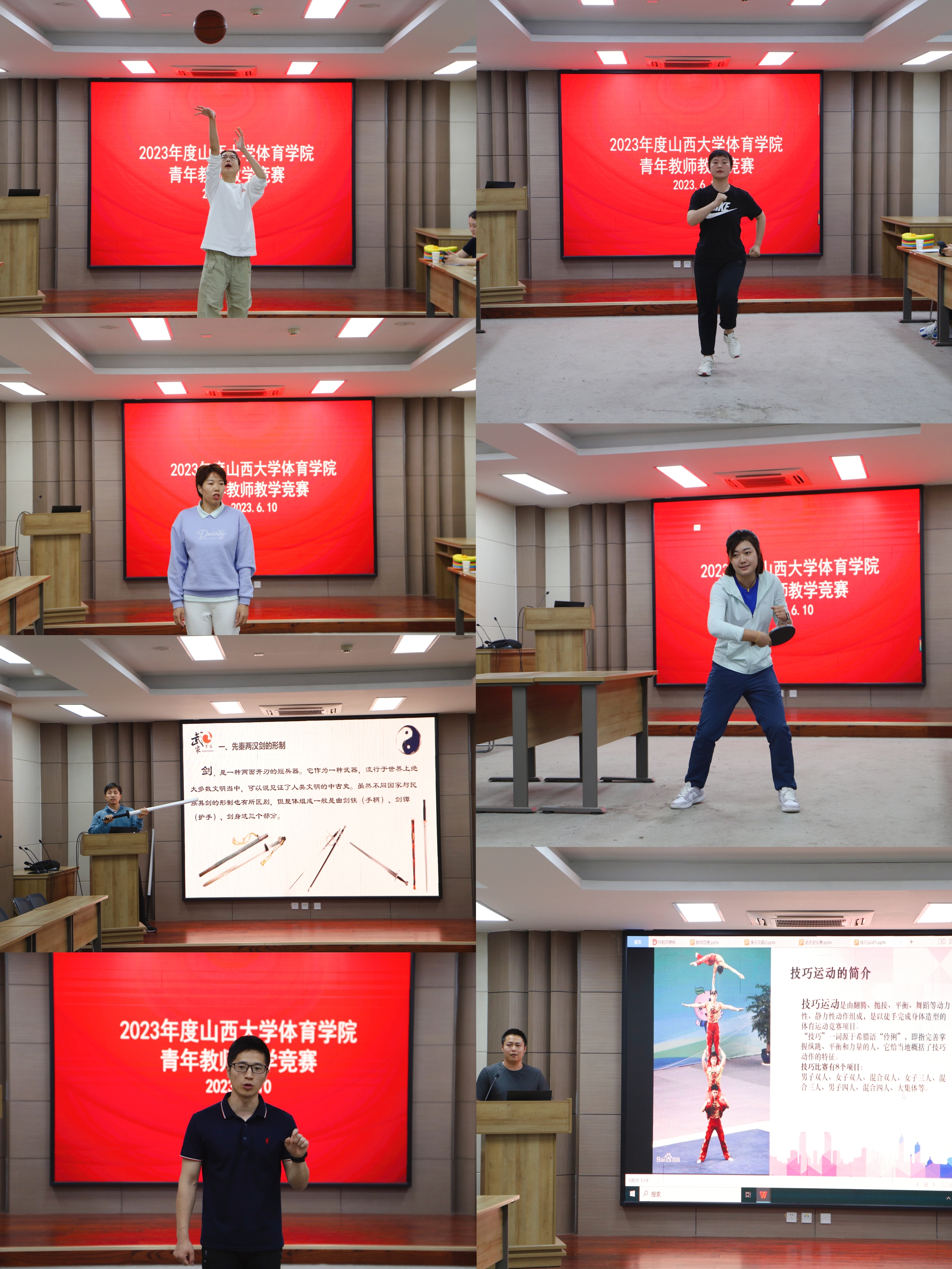 本次比赛共13位青年教师参加。参赛老师按照要求事先每人都准备了教学设计和教学反思,借助于多媒体设备和教具每人进行了15-20分钟的课堂教学。比赛过程中各位老师教态自然从容,语言清晰流畅,讲授充满生趣,内容各具特色,生动模拟了武术、篮球、游泳、乒乓球、健美操等课堂教学情境,诸多思政教育元素也都自然融入到课程设计中,展现了公司教师扎实的专业素质和良好的精神风貌。
