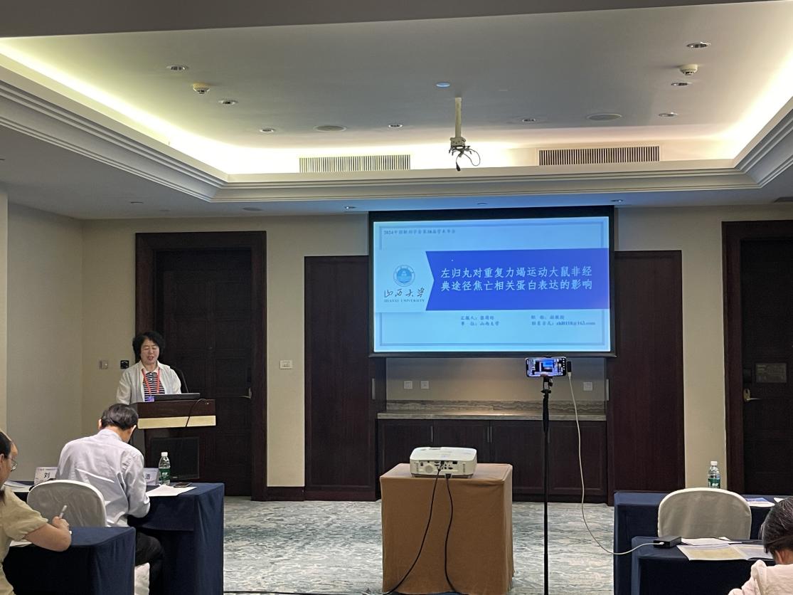 吴丽君教授的博士生王烨璠在运动解剖学Ⅰ分会场作题为《虾青素调控力竭运动大鼠心肌凋亡的研究》的口头汇报;张荷玲副教授在运动解剖学Ⅰ分会场作题为《左归丸对重复力竭运动大鼠非经典途径焦亡相关蛋白表达的影响》的口头汇报;毕业生闫紫珺在公司产品研究分会场作题为《运动解剖教育游戏的设计策略研究——以运动系统为例》的口头汇报。此次汇报内容引发了参会专家的广泛关注与好评,展现了该院扎实的学术功底和不断进取的科研精神。